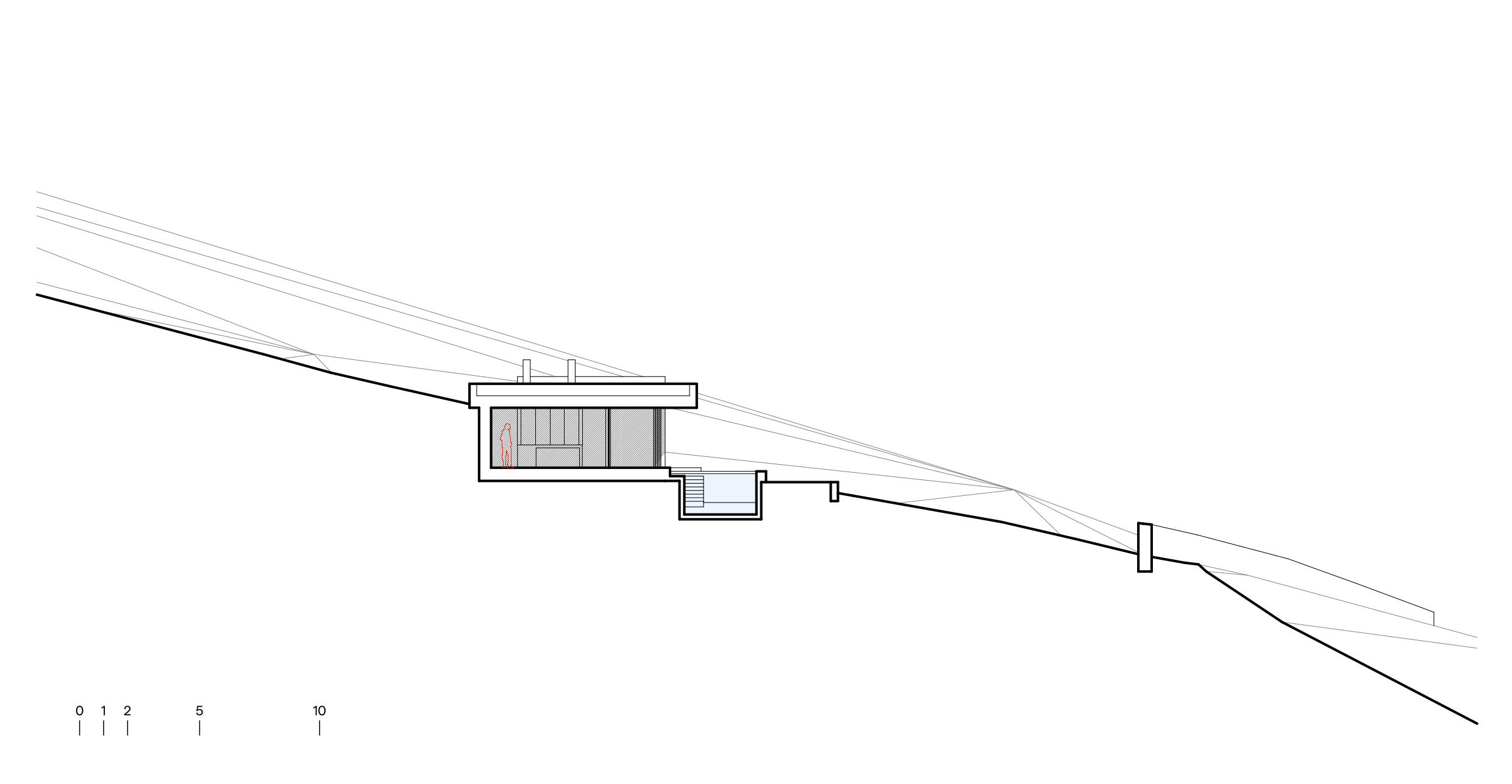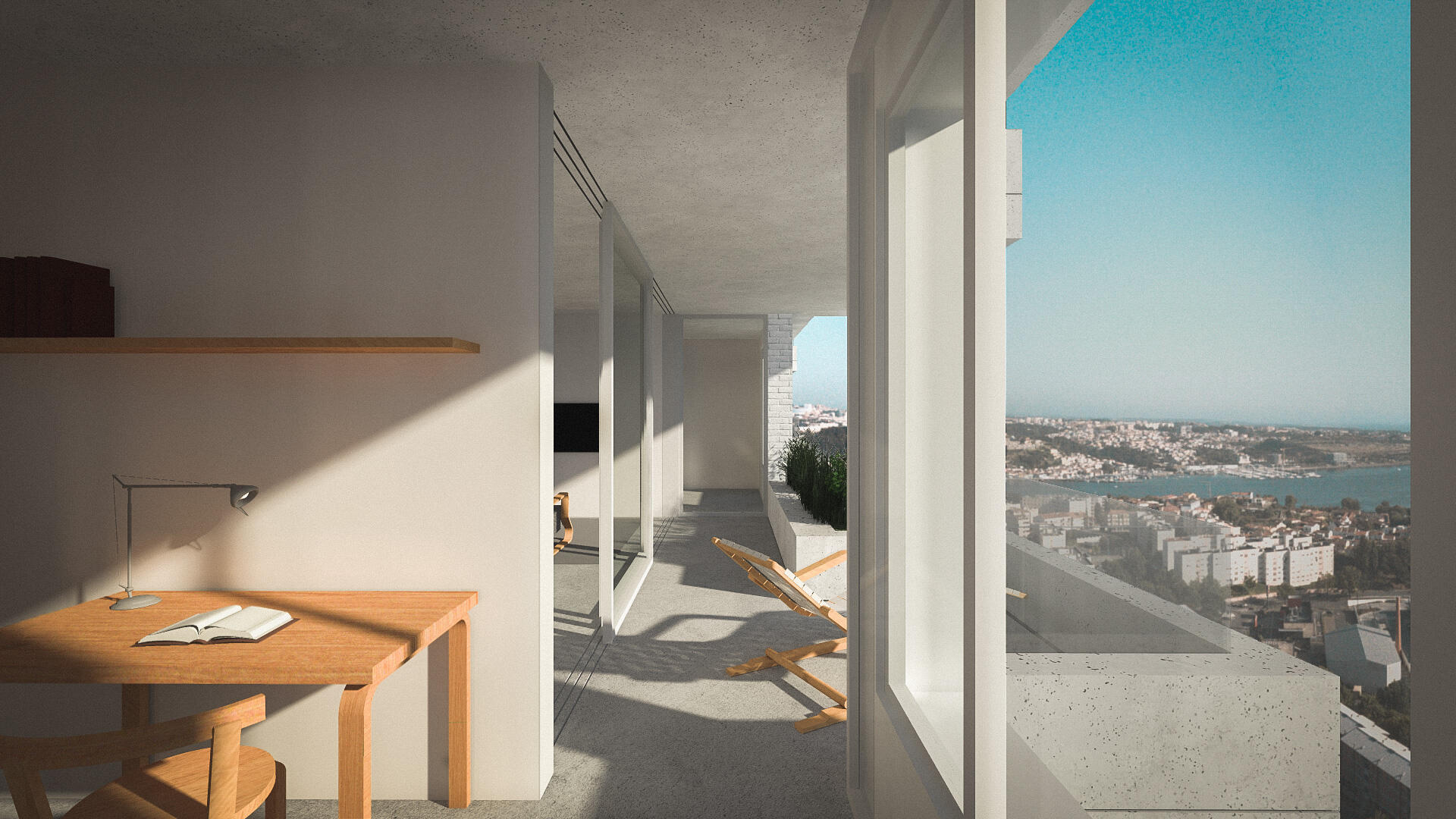 A solução nasceu da própria topografia, através de uma estratégia de enterramento parcial que tira o máximo partido das vistas sobre o rio e a paisagem envolvente.