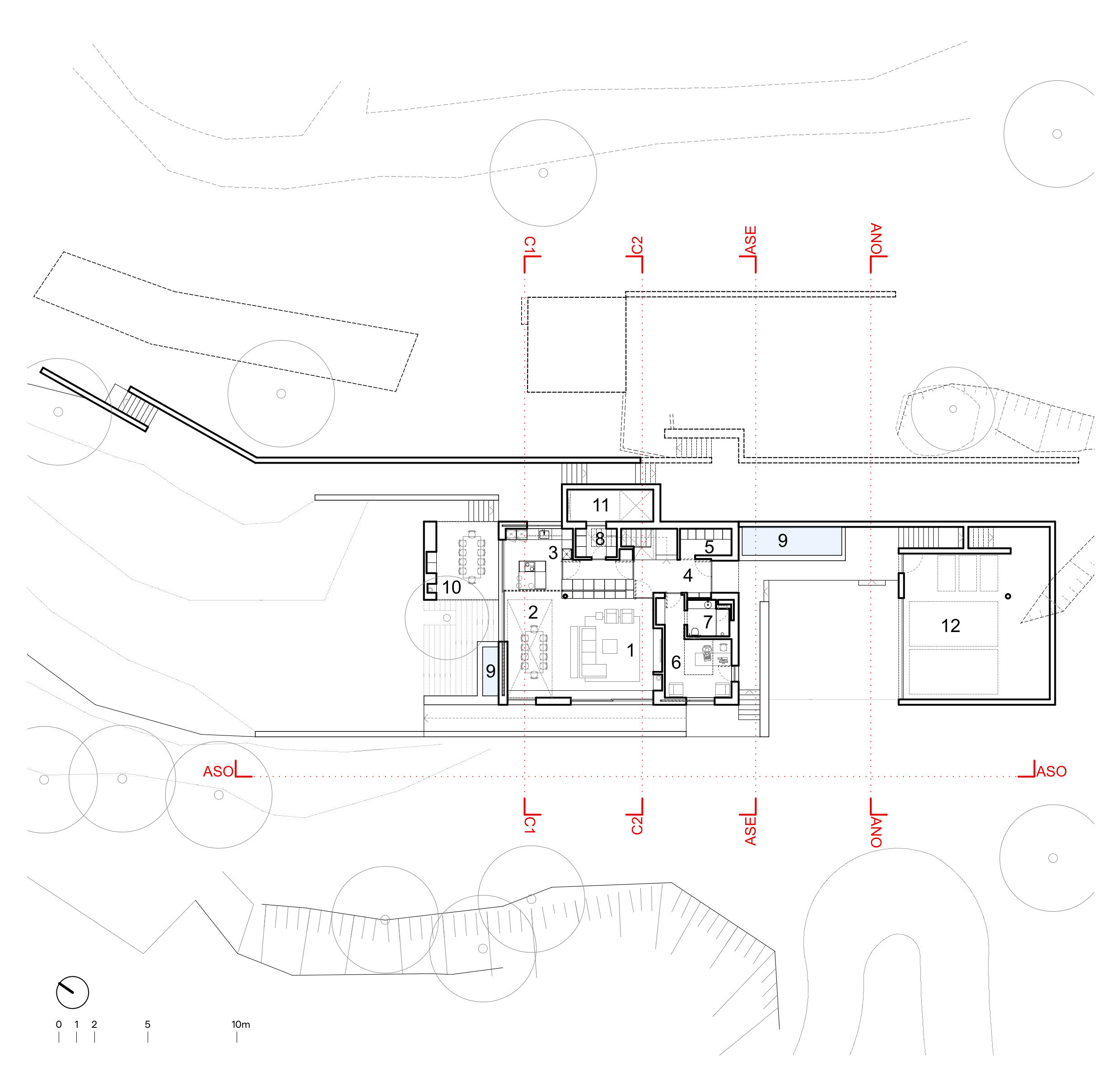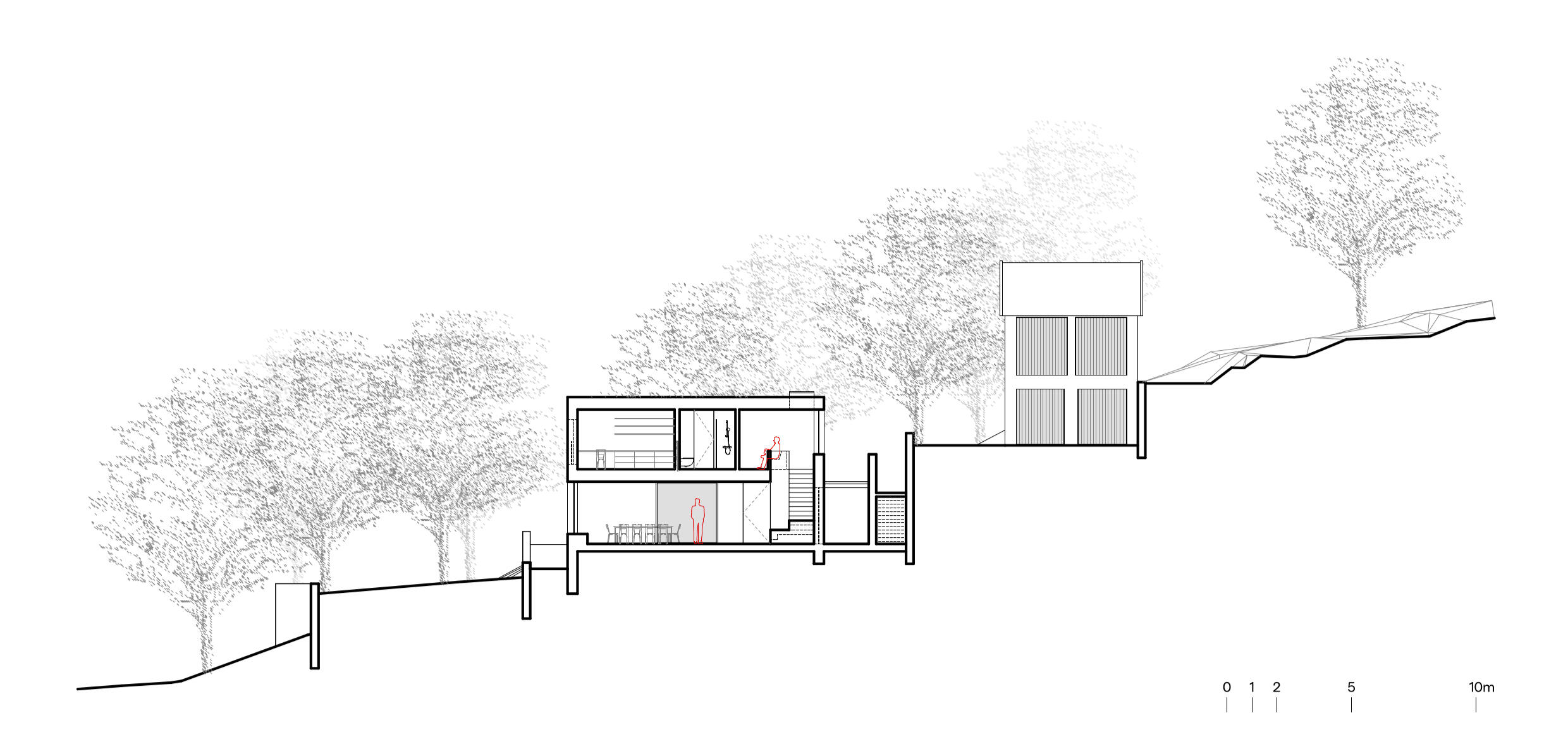Designing on this site was, from the outset, an exercise in the rigorous acceptance of constraints. Due to regulatory mandates, the new dwelling had to be built exactly within the footprint of the pre-existing ruin. The steep slope posed real physical challenges, making even pedestrian circulation difficult. Furthermore, the central location within the property, far from any public infrastructure, required the creation of private access and an autonomous infrastructure system, including an autonomous septic system.